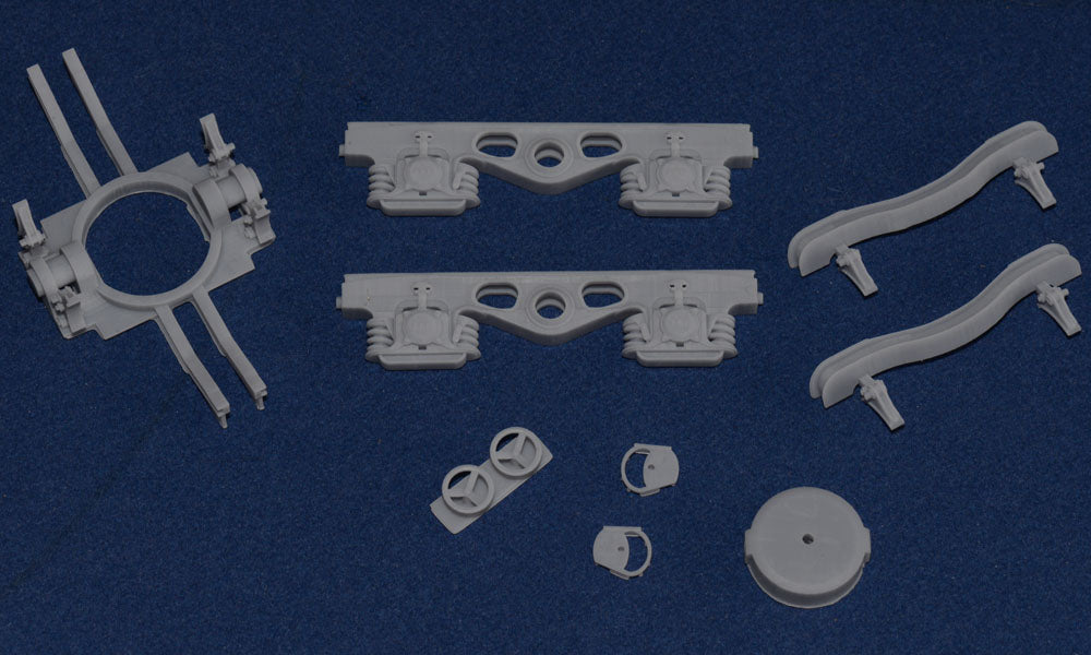 These are genuine photos and not digital representations. You simply need to remove a small amount of flash from the top edge, open up the bearing holes as required for your choice of wheel bearings (not supplied), assemble the pivot assembly using two 15mm lengths of 2mm diameter brass rod (not supplied) and glue it together. If required, brake rods can be fashioned from 1mm brass rod and located into the back of the brake pads and ends of brake levers (holes have been included for this). The brake wheels and supports are then fitted as required (with enough to fit onto one of the bogies only).